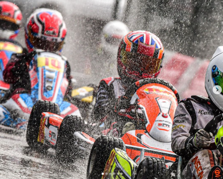 harryfriellracing I seriously don’t remember ever being so cold and wet as at Whilton this weekend...it was a busy grid of 49 cadets. I had great pace in Saturday practice with changeable weather conditions. Mum had promised me no rain on Sunday but that certainly wasn’t the case. Heat 1 wasn’t great only making up 2 positions finishing 19th, heat 2 my pace was stronger and I managed to finish 6th. The final I started 18th as always it started raining whilst we were in parc ferme resulting in a mad rush to change tyres...no time to change gearing, tyre pressures or get wetsuit on😬... managed to get on the grid with seconds to spare. Oh if anyone found a rear wheel rolling around that was mine...would be great to get it back as won’t run so smoothly on 3 wheels😆 Let’s just say I need more practice in the wet and leave it there 😆...lots learnt and plenty to still learn...like listening to @lewhall_ and actually doing what he says 😬 The team had a great laugh 😆 at me when a drowned quivering mess arrived back at the awning after the race...mum actually had to drain the water 💦 out of my boots. Thanks as always for all the race craft tips and advise from all the lads in the awning @joshagambar @vlc_79_80 @thomas_cy_86 @milesturnbull_racing including all their dads and BIG thanks to the boss @lewhall_ for all you advise and patience. Thanks to Bontoff for the 🚀, @newkart for the awesome Xenon chassis, @stustretton_media & @jjreast for the awesome 📷 and my sponsors DPS & @orangetreesbw 😁2h